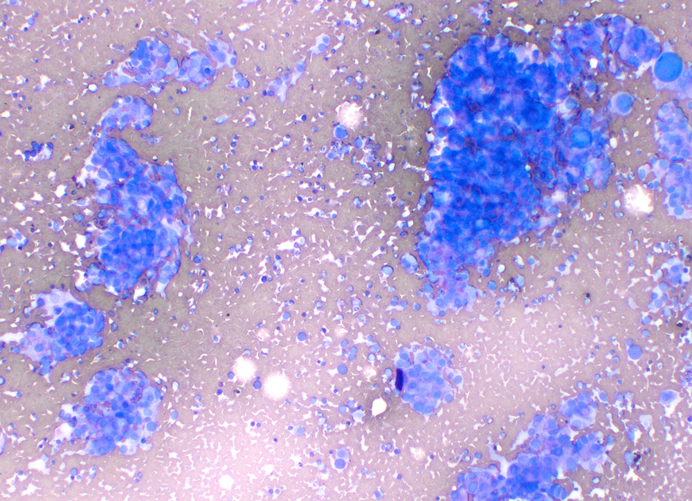 Figure 2a: Aspirate of a splenic mass in a dog with a metastatic mast cell tumor