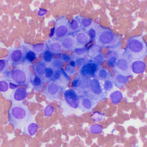Figure 2b: Aspirate of a splenic mass in a dog with a metastatic mast cell tumor